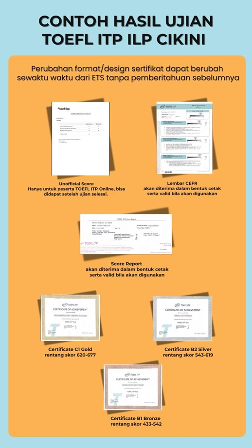 - Certificate of Achievement (Hanya untuk skor 433 atau lebih)