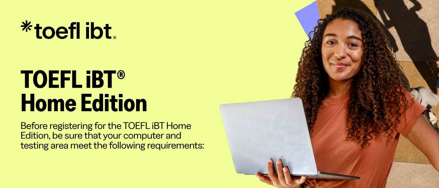 TOEFL iBT® (Test of English as a Foreign Language – Internet-Based Test) adalah tes kemampuan bahasa Inggris internasional yang dikembangkan dan dikelola oleh ETS (Educational Testing Service). Tes ini digunakan sebagai standar global untuk kebutuhan studi, beasiswa, dan karier internasional, serta diakui oleh lebih dari 11.000 institusi di seluruh dunia.
